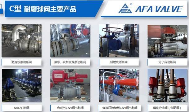 AFA公司作为金属硬密封耐磨球阀技术领域的领先者,一直致力于为国内外煤化工、石油化工企业提供高效、可靠的耐磨球阀解决方案,专注于金属硬密封耐磨球阀的研发制造。C型耐磨球阀作为一种高效、耐用且适用于严酷工况的主导产品,获得国家发明专利,填补了国内市场空白。在煤气化应用中具有显著的优势,还广泛应用于煤化工、石油化工、海上平台、LNG、MTO、MDI、PTA、POSM、CHPPO、多晶硅、双氧水、顺酐等行业。其独特的耐磨性能,能够承受生产过程中高温、高压、冲刷、结垢、腐蚀等严酷工况的考验,有效延长使用寿命,降低维护成本,延长系统运行周期。此外,C型耐磨球阀还具有良好的密封性能和开关灵活性,能够有效防止介质泄漏,确保生产安全。